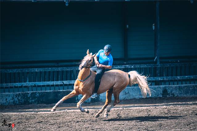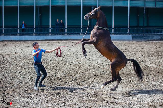 说完表演,回过头我们继续说汗血宝马。大家可能奇怪,为什么我在中间要穿插一个表演呢?其实有两个原因,第一是马术确实精彩。第二是因为表演完后,汗血宝马才能真正的有汗可说。经过一阵激烈的跑动后,汗血宝马的青筋就鼓了起来,因为此马属于运动机能很好的马种,相当于运动员,我们可以看到运动员很多都是青筋暴露,也就是同样的原因。汗血宝马之所以被称为汗血,首先是因为其汗腺发达,特别是肩膀和颈部。其次是因为它皮肤较浅,所以当它剧烈运动之后,汗水会先潮后湿的打湿颈部毛发,加上有些马颜色偏枣红,所以才有了这样的“美称”。