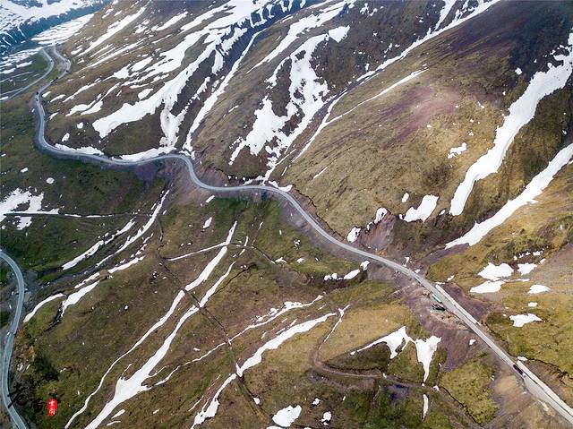 盘山公路,进入巴音布鲁克经过的一段山路。虽然我们所谓的魔鬼赛道并不存在,但并不是说这条道路不存在,只是没有巴音布鲁克拉力赛,也不存在魔鬼赛道一说。所以说,即使不能圆满在“魔鬼赛道”飚车,但只要你来到巴音布鲁克,这里的山路,条条都能称得上“魔鬼赛道”。为什么巴音布鲁克的公路如此特别,雪山就功不可没。从无人机上观看,巴音布鲁克上山的这段路,蜿蜒崎岖,犹如威严长龙。而且弯道有力,给人视觉冲击力很大。在加上海拔的原因,这里始终有积雪相伴,所以让这条上山公路更显得风景独特。