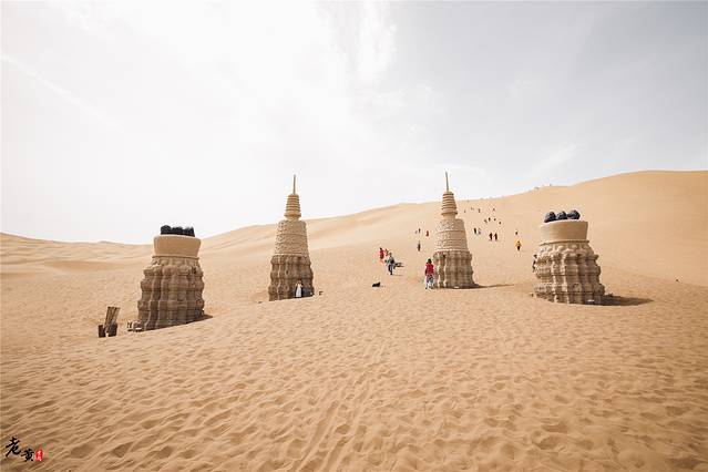 1:爬沙山。进入景区,坐过一阵电瓶车后,即可到达沙漠区域。而随即看到的就是一座沙山。很多游客会选择在这里爬上沙山,因为在上面的视野会比在下面好很多。听说可以眺望到城市。当然这里我也给大家友善提醒,爬沙山和爬山完全不能相同而语。沙子本来就软,而且滑。基本上踩上去,跨一步会倒退半步,所以相当的吃力。不过还好眼前这座沙山高度还能接受,所以这也成为景区里第一个趣味点。如果你选择爬沙,最好是租用景区内的鞋套,一是可以防止沙土入鞋,二是听说可以适当防滑。如果你穿的是凉鞋,那就算了,因为夏天的沙子是滚烫的,不足以让你支撑到沙顶。