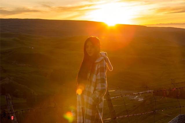 太阳降降落下,在琼库什台,如果能赶上晚霞,那就太完美了。因为余晖可以撒在雪山顶,原以为只能在川西和西藏能看到的日照金山的景像,在琼库什台也可以得以遇见,这是意外之喜。借着晚霞来几张逆光人像,光线美到无可言语,抓紧记录,生怕错过瞬息时间!