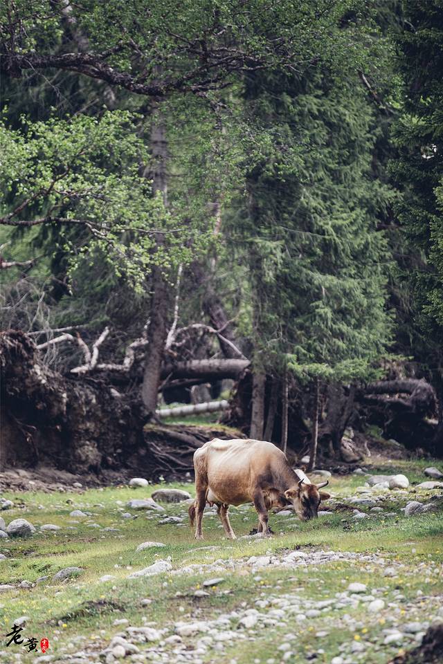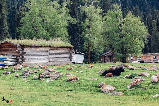 村落的房屋基本上都是木制的,而且其中有几处已经是超过100年的久居,意义非凡。走在村落里,看见牛儿在树下低头吃草,悠悠闲闲。所谓的解甲归田,也不过就此景色。远远的仿佛听见轻轻的牛的鸣叫,这场景只应天上有,人间享用太奢侈。在这里已经不再用去叙述空气的清新,就连树木都比城市里的更有灵气。远离世俗的世外桃源,琼库什台,当得,当得!