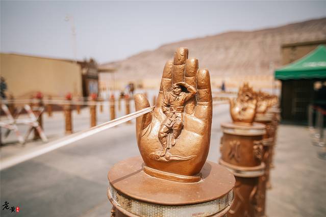火焰山作为西游记经典的回目,景区内自然少不了西游记的元素。大门logo,是一道外形如火舌的雕塑,舌尖上站着孙悟空,肩上还扛着芭蕉扇。从门口就让游客快速的代入到西游记故事中。还有一路上的柱子上,有着佛主手掌形状的雕塑,每个手掌中都有一个孙悟空形象。这其实也不难理解了,借用的是西游记开篇,孙悟空逃不过如来手掌的故事。做的惟妙惟肖,非常有特色!