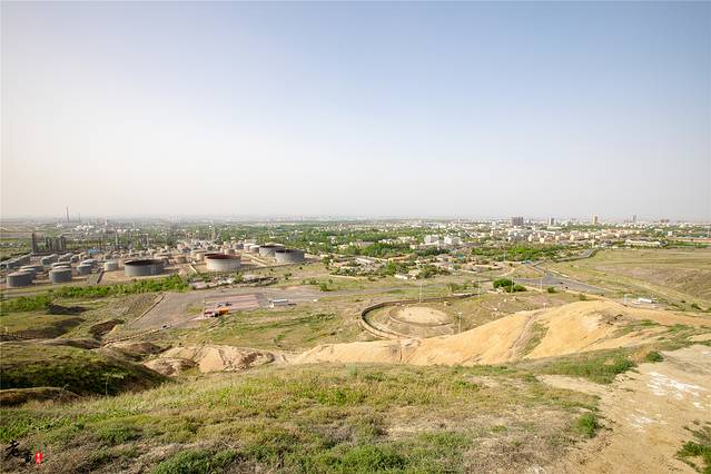 分两部分和大家分享。第一部分,我还是和大家说说泥火山景区。所谓景区,其实也就是一条步道直通山顶,上面的景点就是两个火山喷出口,但目前已经是静止不动的了。从洞口往里看,依旧可以看到许多的泥浆囤积在出口处。在这篇区域,我个人建议你可以有三个游玩趣味点。第一是从步道爬山的时候,整个独山子城区尽在眼底,可以居高望远。第二呢,就是在这种比较偏黄的地貌上拍摄一些照片,我个人觉得这里的地势独特,远处还有连绵的山脉,适合拍人像。第三个就是这里曾经是新疆第一口油井开采地,以及第一口蒸馏釜也在这里,这些景点你可以走走看看,体会当年采油事业的不易。