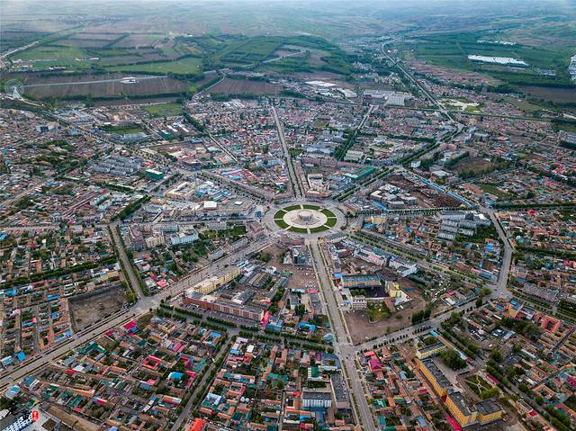 最后给摄影爱好者一点干货。在特克斯是可以飞无人机的,起飞的点我个人有2个建议:第一是离进城大概1-2公里的地方,这里可以从侧面拍摄八卦城全景。第二是从城中起飞,我们是在离街起飞的,但城中起飞需要注意的是干扰问题。城中有几个信号塔和电塔,所以有些地方干扰是特别强的,容易丢信号(御2可以忽略,因为用的是5G信号)。而且还要考虑飞机的马力,如果想飞出2-3公里,且是逆风飞,御1的电量比较捉襟见肘。如果在城中,飞500米,镜头垂直而下,是无法框下全城的。所以只能考虑侧拍等方式,这个需要特别注意下!