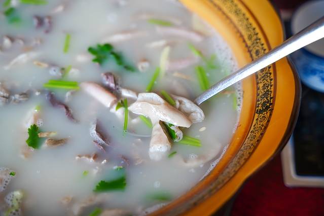 这几天在车上一直听曙光给我们讲 东北 菜的故事,于是中午我们在 额尔古纳 通过某点评网站找了一家 东北 菜馆,要了羊肚,拔丝土豆, 东北 乱炖,锅包肉,羊杂汤,话说, 东北 菜的份量都超级大,点菜的时候,两个人配一份菜就足够了。全程下来,要吃好的话,基本上人均一顿饭能挂到50-70。