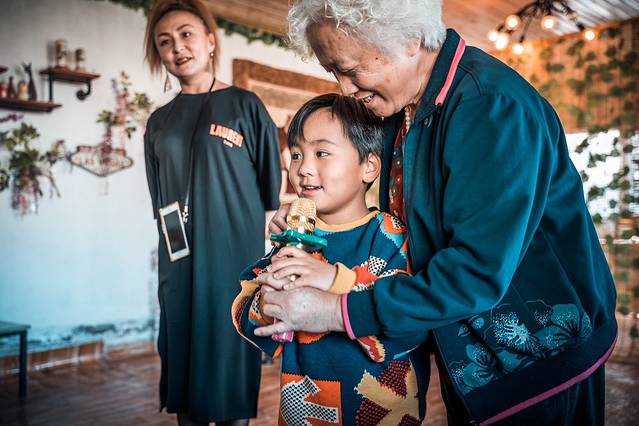 阿吉丽是中俄混血的第一代,弹电子琴的是她哥哥,她的女儿站在她的另一边,我们是今年她迎接的第一批客人,所以她把积攒了一年的热情统统释放了出来,一连唱了四首歌。