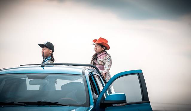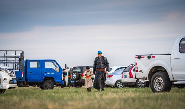 抵达终点时,比赛还未开始, 蒙古 族同胞也开着车从草原的四处过来,人越聚越多,每个人都穿着 蒙古 族的传统服饰,要知道这么一套还是挺笨重的,这在平时不会经常穿,只有才这样的大日子才会体验到这难得的 蒙古 风情。