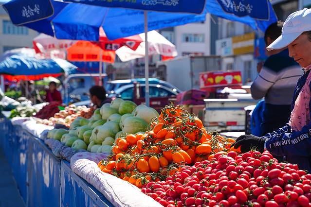第二天,大概四点就天亮了,我们在床上又使劲睡了一觉,还是迫不及待的爬了起来,吃过早餐,曙光带着我们在菜市场购买了当天野餐会用到的蔬菜水果和羊肉,虽然是他自己花钱买,但真的在质和量上面都做到了严格要求,一切,我都看在了眼里,喜欢和这样的老实人打交道,不费心力啊!