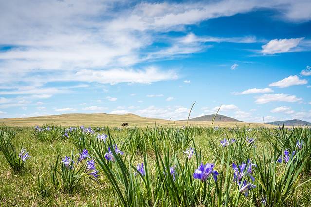 午餐后,我们驶往了不远处的呼伦湖,这是 内蒙古 第一 大湖 ,也是 中国 第三大内陆湖,距离 满洲里 的主公路又不远,所以我们就顺路过来看看,湖边因为水分充足,这里的花开得比草原更好,几匹马儿悠闲的踱步到湖边。