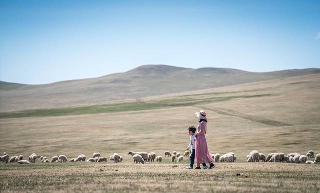 孩子兴奋不已,跑向了羊群,司机曙光让妈妈阻止了他,然后告诉我们尽管对孩子没有危险性,但这样的行为会吓坏胆小的绵羊,开始奔跑躲避,一个跑,一群羊都开始跑,都不吃草,牧羊人会很不开心。