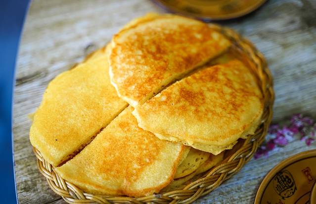 主食还有玉米面做的饼,非常适合孩子,我们一家人吃了三份。
