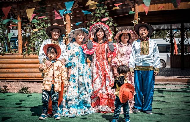 节目的最后,是合影环节,大家都会穿上 俄罗斯 的民族服装在院子里拍照,爱美的女士也可以自由发挥。