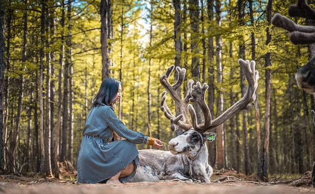 就在 根河 的 大兴安岭 ,居住着鄂温克族,这是 中国 唯一一个驯养驯鹿的部族,说到驯鹿,大家脑海中应该第一个就想到圣诞老人的坐骑,对的,就是那个驯鹿,不止是 北欧 能够看到,在 呼伦贝尔 你一样能遇见这个漂亮的动物。