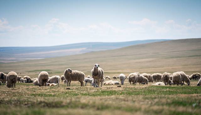 渐渐的,草原上的其它主人公牛羊马也一一出现,不过羊群还是最多的,今年春天刚出生的羊羔已经断奶,可以独立吃草了,在草原上咩咩的叫着,很是可爱。