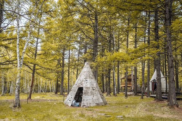 建好木结构之后,会用防水的白桦树皮在外面铺上一层,即使是暴雨也不用丝毫担心。