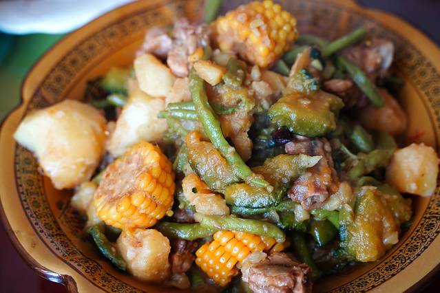 肉和各种蔬菜一起噗呲噗呲炖着,吃这样木柴做的饭,味道是真的特别香