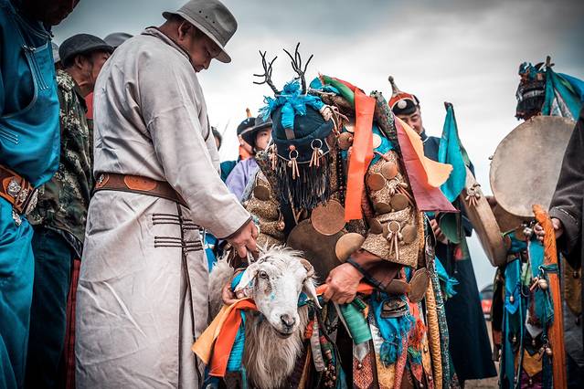 有人甚至还牵了一整头羊来,可见这萨满祭司在 蒙古 族同胞心中的地位
