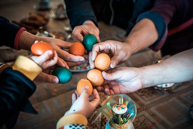 第二个环节,是介绍 俄罗斯 族的生活习俗,为了加强我们对东正教复活节的认知,阿吉丽一人发了一个鸡蛋给我们,让我们玩一个碰鸡蛋的游戏,最后的胜者居然是奶奶,胜利者有 俄罗斯 巧克力的奖励,但也需要上台表演节目,最后这个工作由儿子代替了,当然,巧克力也归了他。