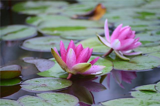 含苞待放的,摇荡绽开的、粉嫩娇羞的、雪白如玉的,到处美艳生辉,给夏季的芙蓉园更增加了几份温馨舒服。