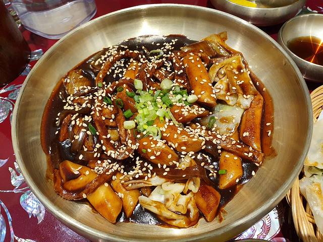 这是炸酱炒年糕,所以颜色比较黑, 不能吃辣的 可以点这个哦
