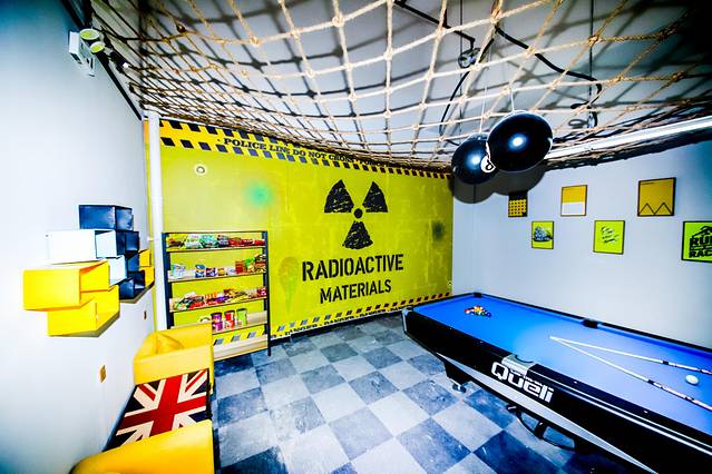 去卧室把行李放下,惊讶一下,真的容量超大,是做成日式的榻榻米,但又弄成通铺的形式,这样能睡下好多人,我们女生在这个房间睡绰绰有余啊!而且被褥什么的都是新换上的,十分整洁。休息片刻后去别的房间转了一下,让我惊喜了好长时间,以前去过的轰趴馆设备都要么不齐,要么就有故障,最后能玩的也就一两样,这家黑眼圈不仅设备很多,而且还有VR,各种街机!妈惹简直就是天堂啊!当我听到自动麻将机码牌的哗啦哗啦声我就知道大人们也找到了他们的天堂!
