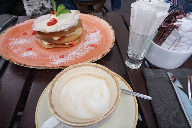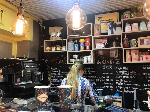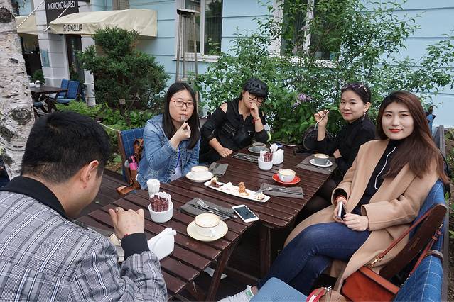 程程真的是个吃货哈哈哈哈,刚刚跟大家吃完披萨和咖啡,这会儿又跟我们进来这家店。店门口有专门开门的,和统计人数的,海参崴虽然小,但是欧洲老牌服务真的是好。