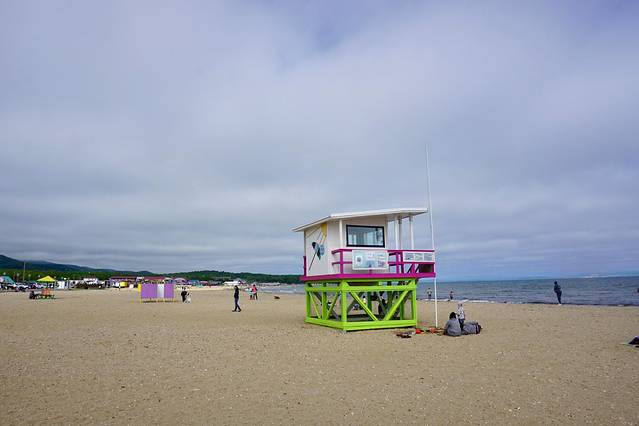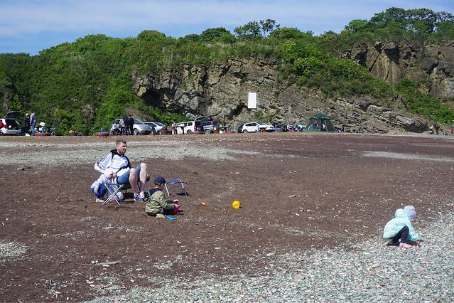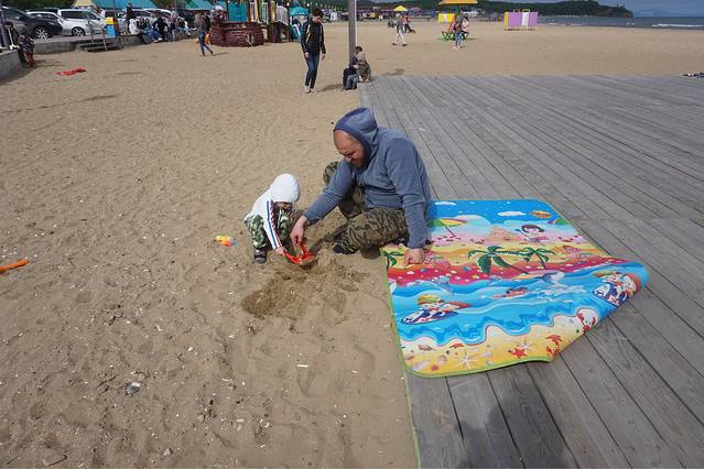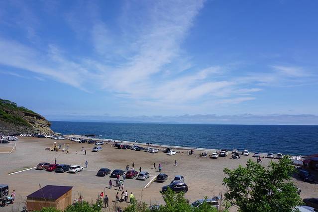 做完玻璃海滩,再去隔壁一个沙滩浴场,大家就完全没有兴趣,也不想脱鞋下去踩,就走走找找厕所就上车了。海边的酒店下面有咖啡厅里面有厕所,但是一进去就会有人来询问你不会让你免费用厕所,告诉你后面有一个公共厕所。厕所找到了,还要30卢布团友们决定不上了,我也只能走了(其实我想说来都来了,虽然贵了点…)