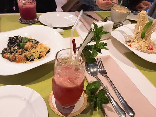 由于照片边缘加宽,把这个小姐姐的身材再瘦一半可以想象下,长得有多漂亮!身材有多棒!整个餐厅都是礼服美女和西装帅哥当服务生,想想评价第一也是有道理的。