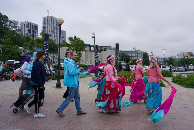 6月份的海参崴,平均都是十几度,我以为会冷,但是没有想到这么冷!!!第三天下雨,直接10度以下,夏天来避暑真的是极好的,六月还是太冷,但是当地很多俄罗斯人都是短袖,特别是去比较好的餐厅吃,来的当地人都是短袖午休礼服裙,完全是夏天的装扮。但是河边走的时候会看到俄罗斯阿姨穿着羽绒服卖冰激凌。