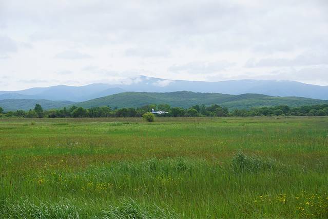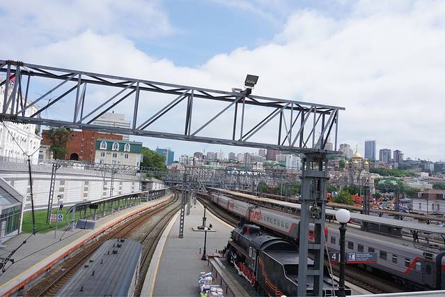 早上7点到了海参崴,飞机上看得到厚厚的云层,是我这么多次飞机以来看到过得最厚实最广阔的云层,就跟条遮天盖地的灰白毯子一样,飞机在云层上方盘旋了很久,感觉像是再找洞钻下去,毕竟穿过云层会有摩擦震动,但是应该是我想多了。。。。后来就很快穿过云层,然后一片开阔的田野平原,后面几天也都是这样的天气,云层很厚的挡住了阳光,导致带的所有墨镜帽子和防晒都无用武之地。