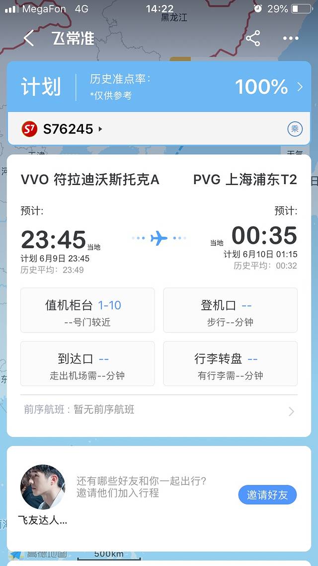 上海/海参崴 参考航班(S7 6246 02:15—07:35 约3小时)