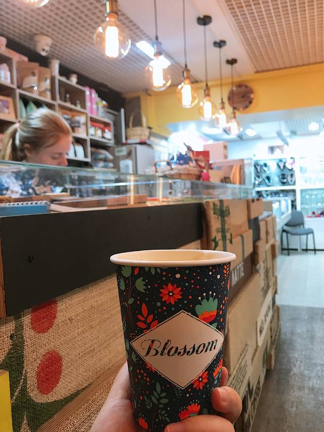 去广场要走,地下通道地下通道离开了很多小店,我经过这一家有明信片和咖啡卖得小店就坐下来,跟令芳一起喝了杯热咖啡。