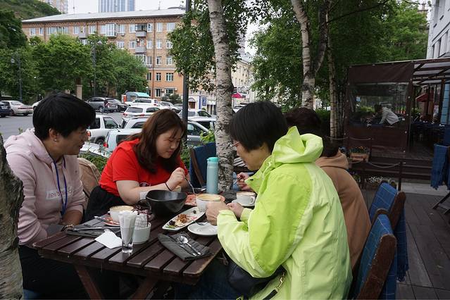 海参崴是因为4月的时候有个姐姐全家去了,羽绒服啥的全副武装,但是看着吃帝王蟹很爽,一个海军军事基地的感觉。后来在网站上看到了别人家的游记,三四天,三四千就可以去一趟,就心动了,很奇怪端午的行程总是定不下来,看着大家都有别的安排的,就赶紧定了海参崴的跟团游,团费才2500,然后再穷游上Biu了个驴友就是LM,发现志同道合就约好了一起报团去了。后面发现,我们俩都有比较强的自助游能力,她留学过英语好,也善于沟通,我方向感好,也比较有服务精神,两人还都喜欢四处玩,玩的节奏也是懒散的,配合默契,就演变成后来的带团了。