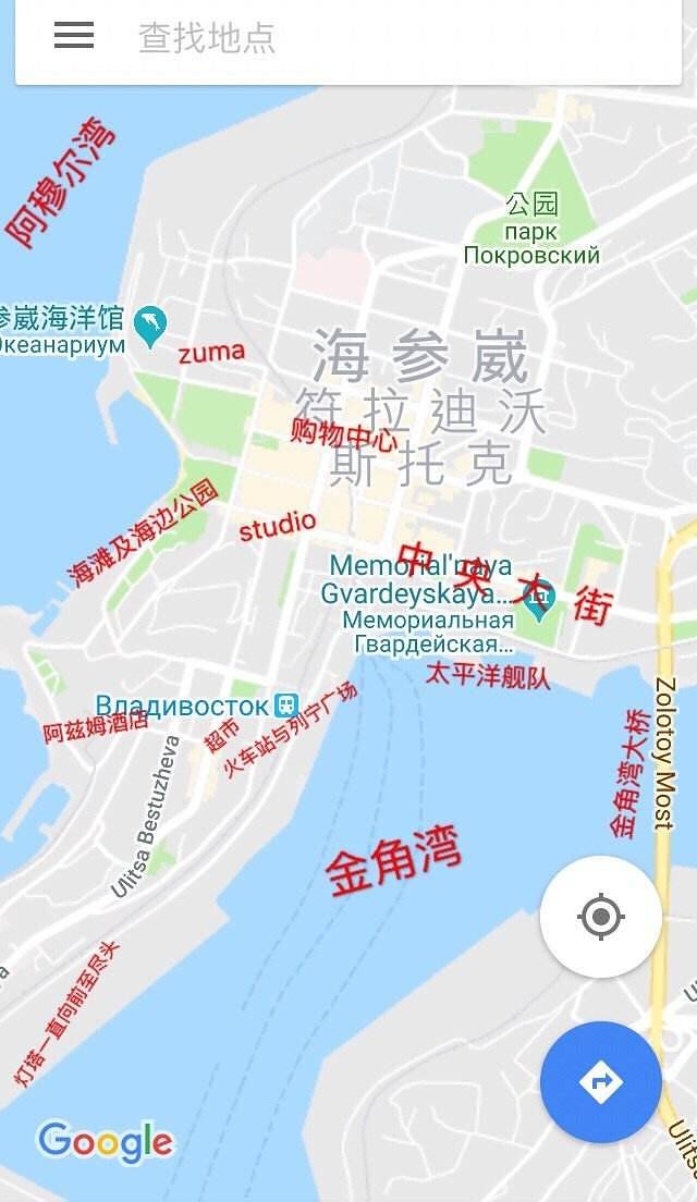 这是海参崴市区的地图,大概中心点都有了,这是市区大概我们的县城那么大,除了网红灯塔和玻璃海滩稍微远一点需要坐车,其他的火车站、中央大街、海滩和海边公园真的就是走走都能到的,后面两天跟团的行程就一直在这几个地方转,转一下去吃中饭又来转,隔一天又来转,不科学,所以下次如果自由行带我,我给你们安排好哈哈哈哈哈