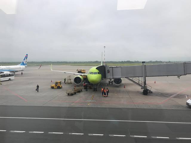 海参崴的机场外观还是很美丽的,但其实就是很小的一个。。。在6月到了北方,一出机场还是明显感觉到冷,赶紧穿卫衣和外套,也有很多本地黄牛司机拉客的,都穿着短袖,腻害!