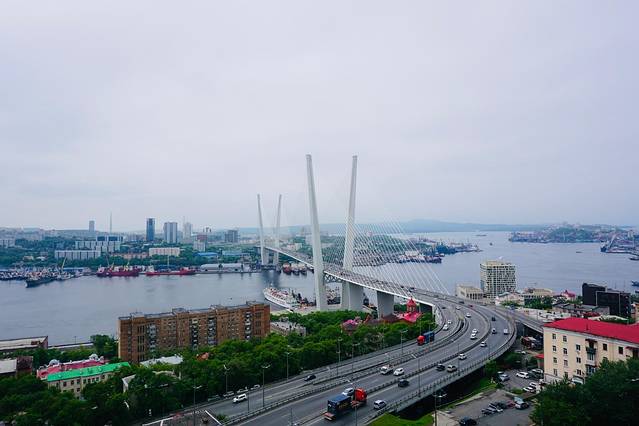 金角湾大桥边上的鹰巢山制高点,在制高点不仅可以看到海参崴市的全貌,还可以远眺日本海出海口和俄罗斯太平洋海军舰队所在地——大俄罗斯岛及符拉迪沃斯托克的地标建筑——金角湾斜拉桥。