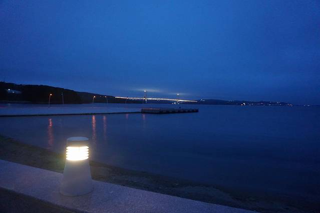 从走去灯塔的那条石子路上望左边,就是这座大桥就是金角湾大桥。