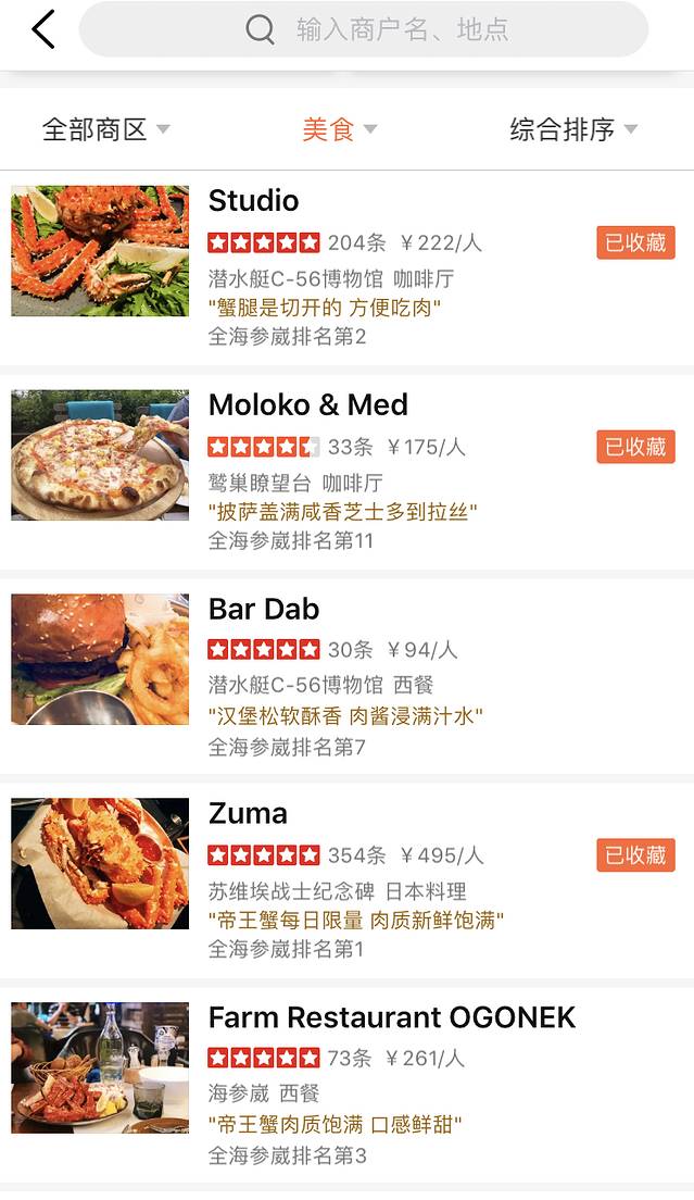 这条海滨路走到尽头就是这家餐厅,也是很有名的,但肯定档次和服务没有zuma高,但是性价比高,我们看了下帝王蟹才1500卢布一斤吧,相差一半,从点评上看坐在这里吃晚餐看海景超级棒!