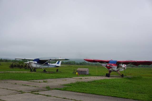 因为当天天气不好,早上来的时候有点下小雨云层太低,所以要等天晴看天气情况才能飞,我们到了之后大概又等了一个小时。在那边喂喂狗啊,然后看看风景拍拍照什么的,后来雨还是有点下,但是不想白跑一趟,飞行员看了一下,说也可以开了,我们就去开飞机了