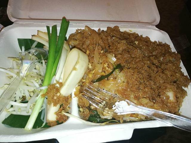 炒河粉,还能适应的泰国食物,豆芽很脆甜,还有配上生的香料和韭菜,不知道怎么吃,这家生意很好,每天都要排好久队才能买到。。。