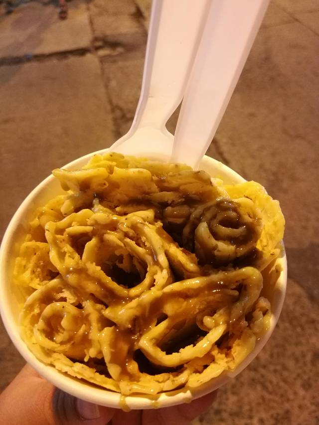这个是王权免税店买的炒河粉,味道还可以,旁边放着的生香料,面上鸡蛋炸的酥了