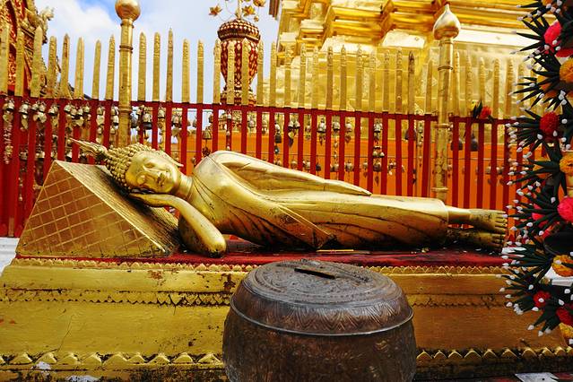 位于素贴山上的双龙寺(又名素贴寺)是清迈著名的佛教圣地,始建于公元1383年。传说古兰纳国王将一头背负佛骨舍利子的白象放归丛林,白象来到素帖山后鸣叫三声倒地西去,于是国王命人在此建造寺庙,寺庙门前的309级台阶由两条长龙雕塑守护,双龙寺因此得名。