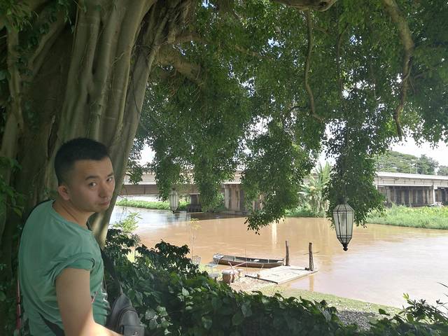 第六天报了清莱一日游,主要景点就是白庙、蓝庙、黑庙,路途中导游说带我们去吃一家特别有情调的餐馆,满怀期待,餐馆环境在一条小河边,河里的水是黄色的,环境还是不错的,至于菜嘛,反正没吃饱。。。
