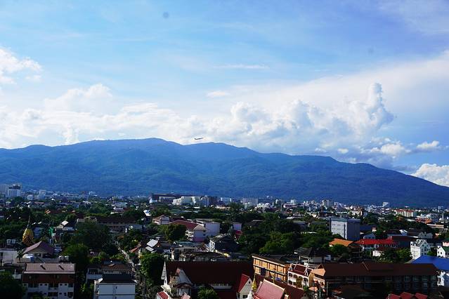 从酒店俯瞰清迈,刚好有飞机飞过呢。。。