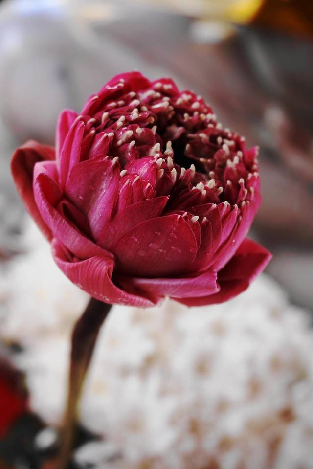 寺内礼佛的莲花,很漂亮,和国内莲花品种不太一样,外围的花瓣被交叉叠起来也很有层次感