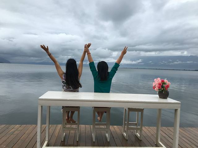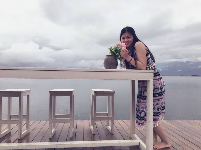 一大早就奔去海地生活啦,虽然客栈老板跟我们说只有3分钟路程,但太多小巷啦~很难找~那里就是之前微博上很火的白桌子白椅子在海边的图片~那片水域很干净,也好多人在拍照~幸好我们去早点~但下大雨了~我们都没拿伞!!!所以在那里等了10几分钟雨停~回来后,接着去南诏风情岛,从我们住的客栈到码头需要步行9分钟~码头那里有好多吃的~从风情岛坐船过来后我们两个人总共点了2份砂锅米线和一份凉面,哈哈~最后吃光了~一份10块钱~说真的在景点周边能那么便宜真的很难得~接着说,过风情岛的门票是50块一人,如果在美团团购就是43块一人,我们就是美团买的,但是美团团购的真的很麻烦~我一直以为它的票跟以往我们团购的票一样只要给她美团验证码就可以取票,结果排了好长的队终于到我了,那位姑娘说你要打电话给商家叫他发8位数的取票码给你才能取~~偏偏在岛边信号还超级差,打了好几分钟才打通电话,幸好商家挺给力的马上就发取票码到我手机了~然后终于取到了票~那边有个大大的观音菩萨,香火挺旺的,海边也有很多拍照的地方~风景挺好看的~不过就是坐船过去和回来都很多人~~接着出发去丽江~~本来我们是已经订了大理到丽江的火车票了,但如果从双廊坐车回大理,再从大理坐火车去丽江会浪费很多时间,因为双廊离丽江比较近,所以我们果断退了火车票,在双廊这边拼车去丽江,一人80块车费~一个多小时就到了~司机赶时间回丽江,所以车开得飞快,有几次急刹,本来在车上睡着的,一个急刹硬是把我撞醒了,这点很不好~出门在外还是觉得安全第一~