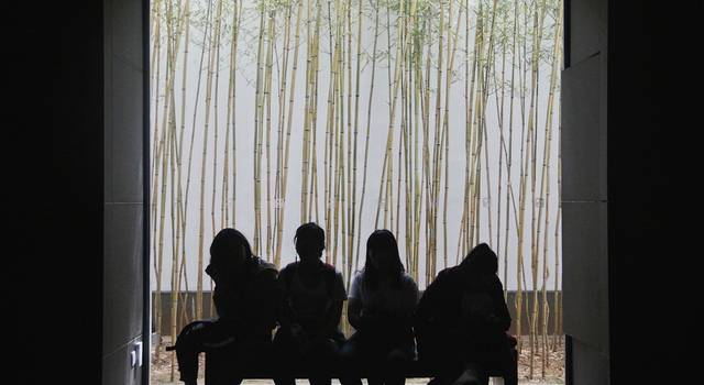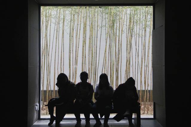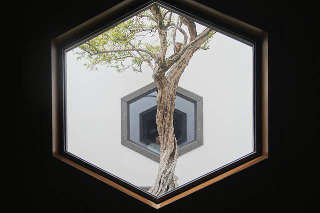 我不懂设计,对里面展出的文物也知之甚少。但总能在这呆看很久。看墙上巨大的唱片,看橱窗里玉琢的mini中山装,看阳光透过百叶窗打在墙上的规律的斑纹,看窗前的人来人往,看人造的假山流水,看假山流水旁的那颗树。