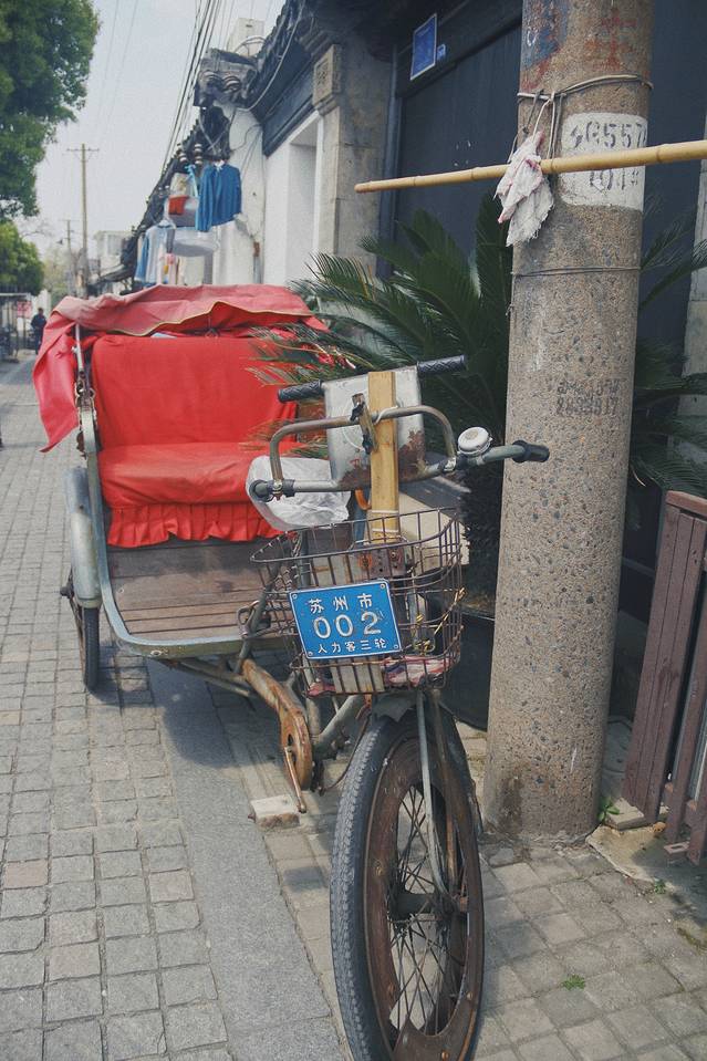 从耦园出来,沿着小河一直走。我的脚步好似乱麻一般,漫无目的地延伸。一路穿过旧式居民区,年迈的老奶奶坐在外头晒太阳,也有人家的人力三轮停在门外歇息。穿过平江路,河道里撑船的老师傅稳重地掌着舵,为了让游人能够细致的观赏而徐徐前行。