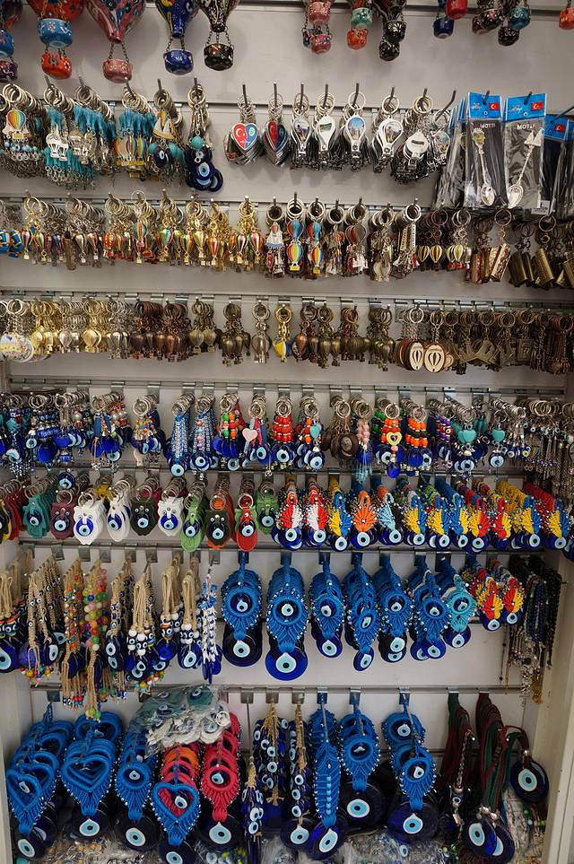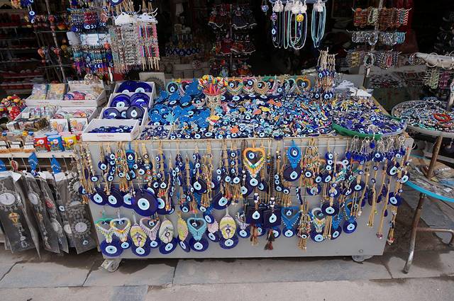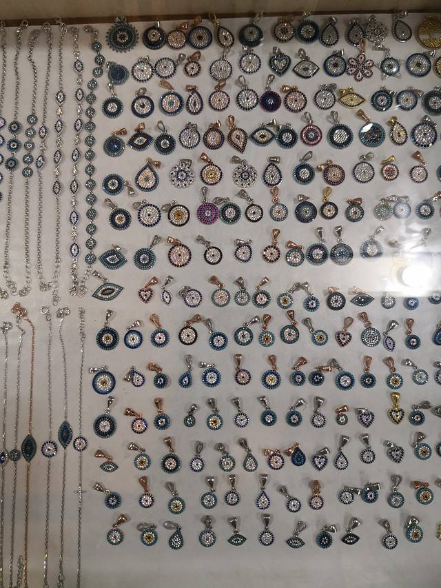 到处都是卖蓝眼睛的饰品,925银,一个百十块钱吧,倒是不错的伴手礼