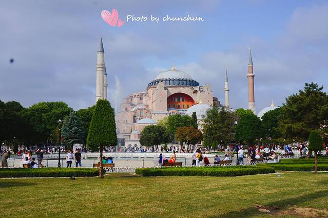 我看了一下天气通,土耳其早上五点一刻日出,八点一刻日落,所以时间尚早,去了对面的圣索菲亚大教堂,大概步行五分钟啊,选的时间刚刚好,基本没人。土耳其全程的门票都涨价了,跟他的火爆程度相媲美,因为每一个地方的门票都比我看的游记要贵一倍,捂脸。